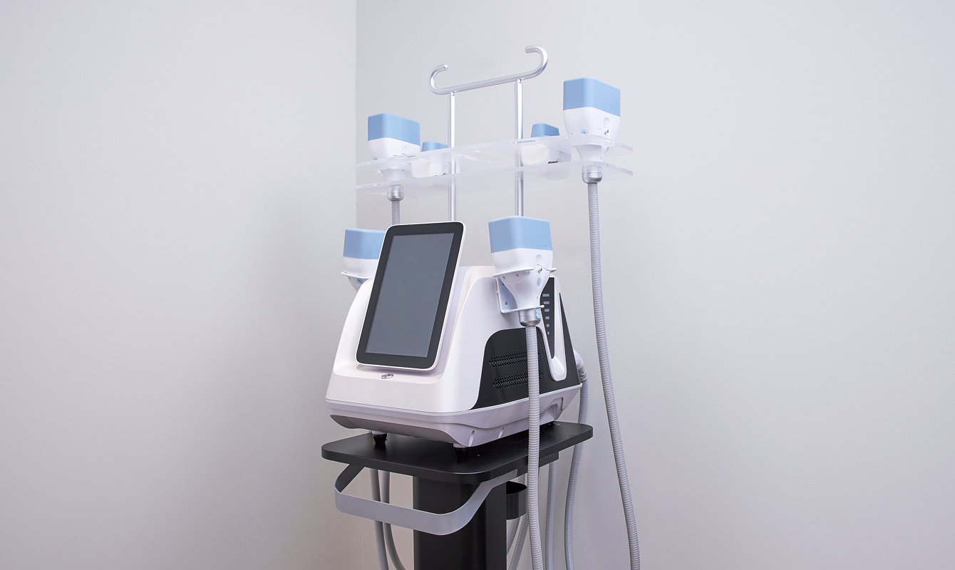 1回で脂肪細胞を最大20%破壊する痛みに配慮した脂肪冷却マシンを使用します。4部位を一度に治療することができるため、短時間・短期間での治療が可能です。