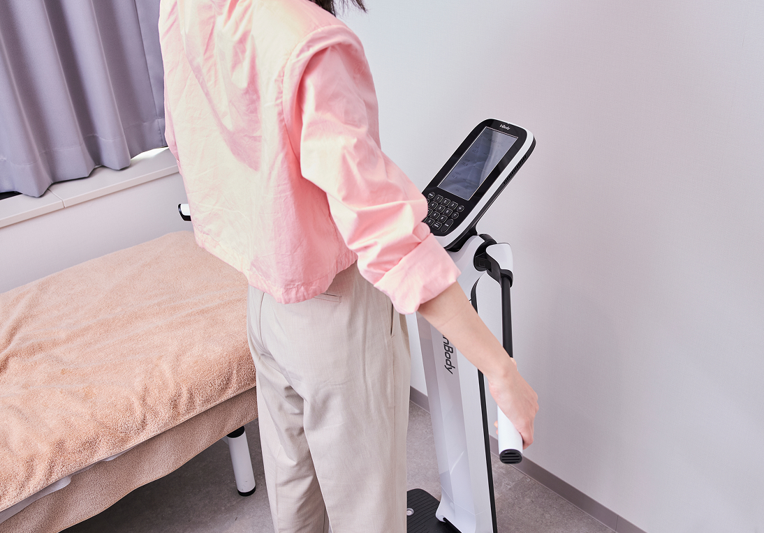 脂肪量や筋肉量、体重、基礎代謝など体成分を詳しく測定します。